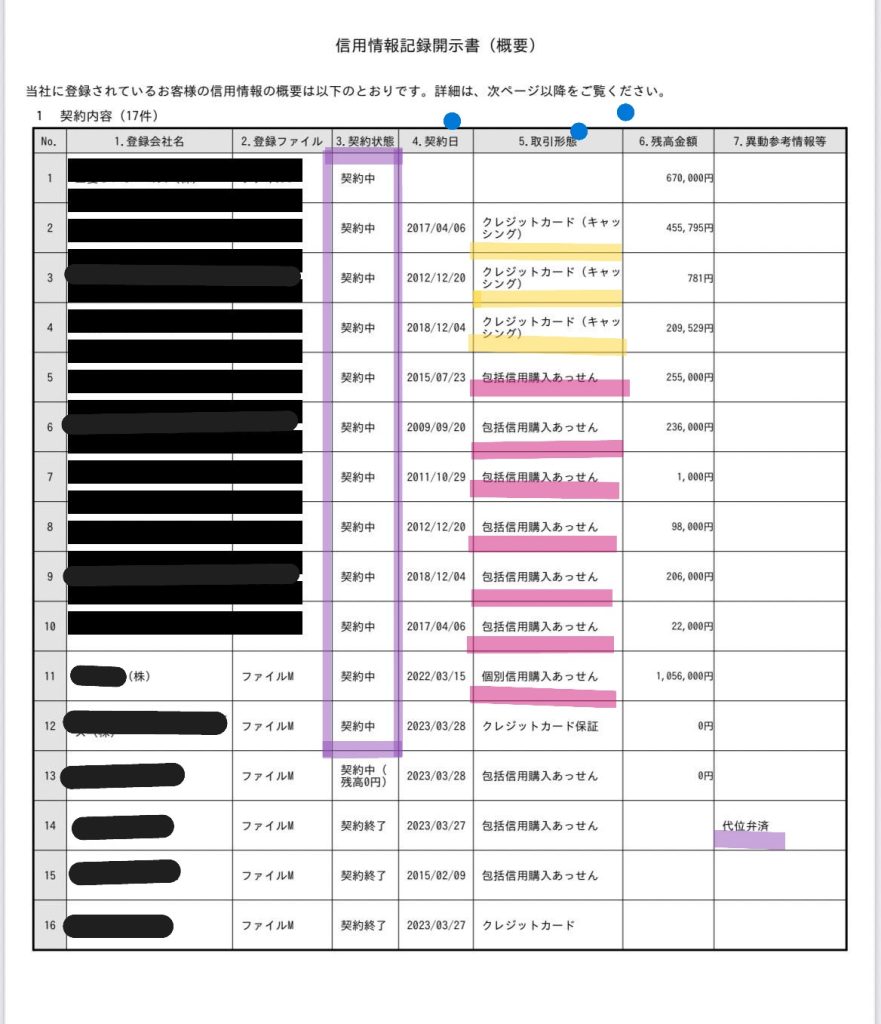 📸 実際の信用情報開示書(個人情報は伏せています)